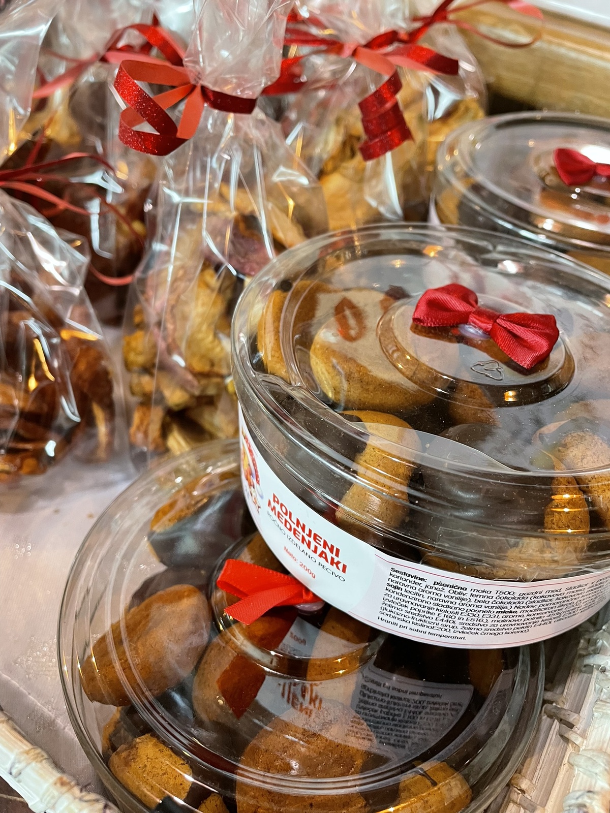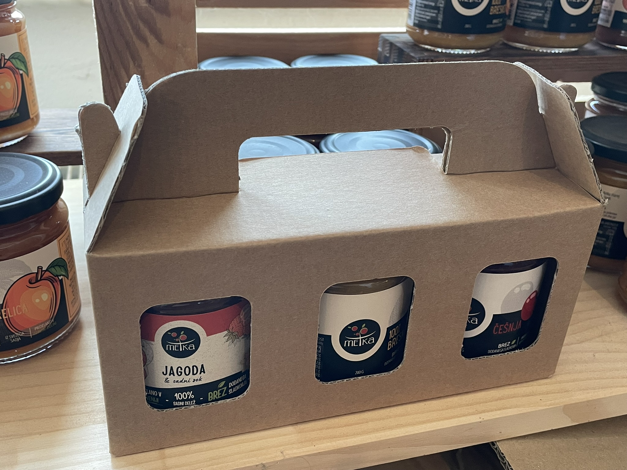 Pri nas najdeš suho sadje, domače piškote, marmelade in med, ki vedno razveselijo. Za malo bolj hudomušne so na voljo tudi odlične žgane pijače, za ljubitelje dobrot pa izbrane suhe mesnine od klobas do salam. Dodaj še naravne sokove in imaš popolno darilno košarico za Miklavža ali Božička.